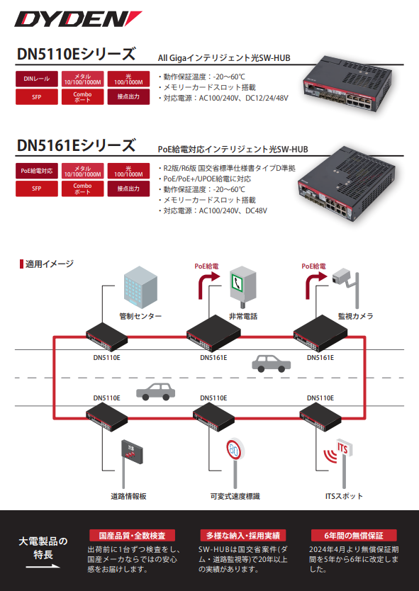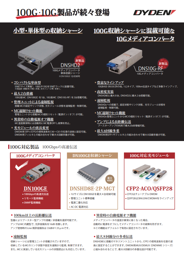 大電ネットワーク機器製品の違いをおおまかに理解したいお客様へ向けた、簡単に機器選定ができる一覧でまとめた資料です。 変換媒体、伝送速度、ポート数、機能などで製品を分類しています。